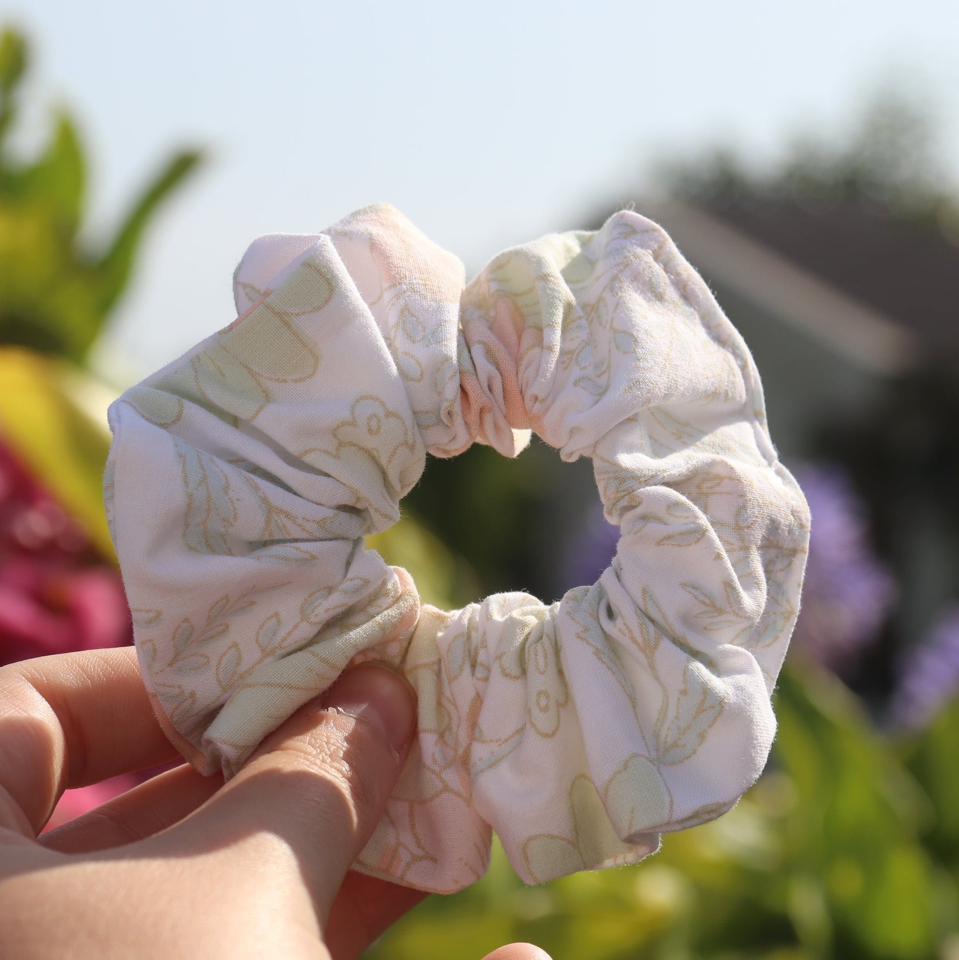 Chouchou fleurs vertes et oranges pastel